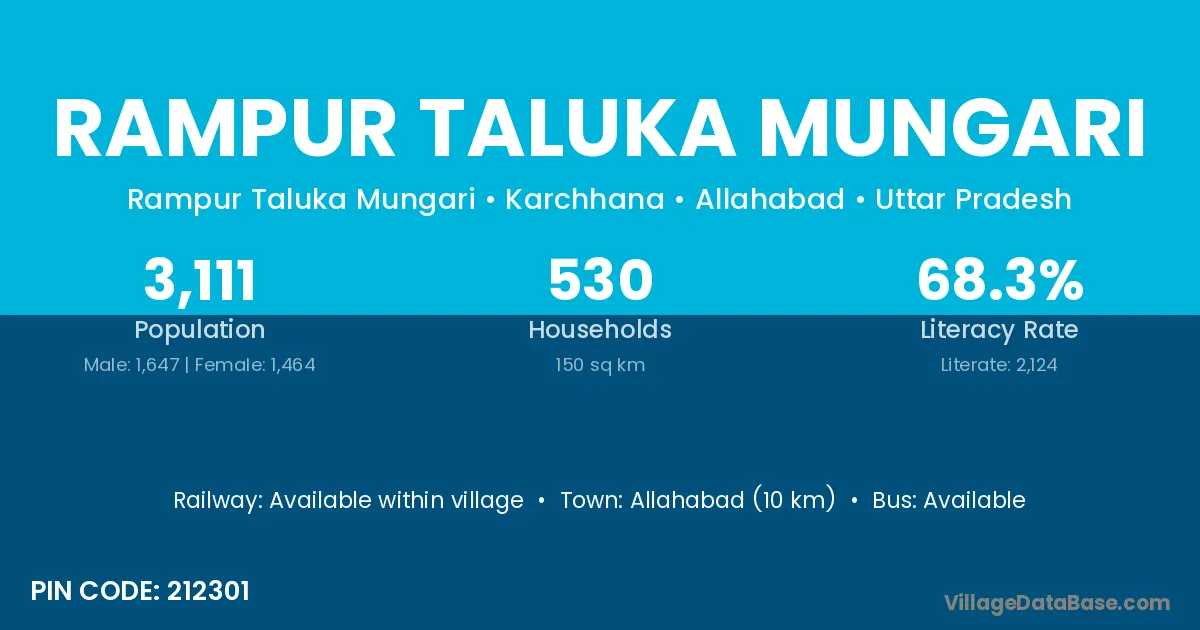 Allahabad (10 km) is the nearest town to Rampur Taluka Mungari village for major economic activities and is located approximately 10 km away.