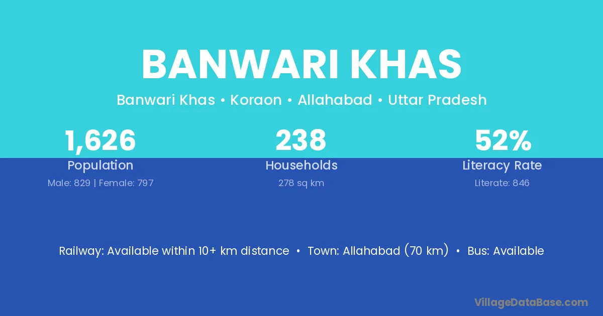 Allahabad (70 km) is the nearest town to Banwari Khas village for major economic activities and is located approximately 70 km away.