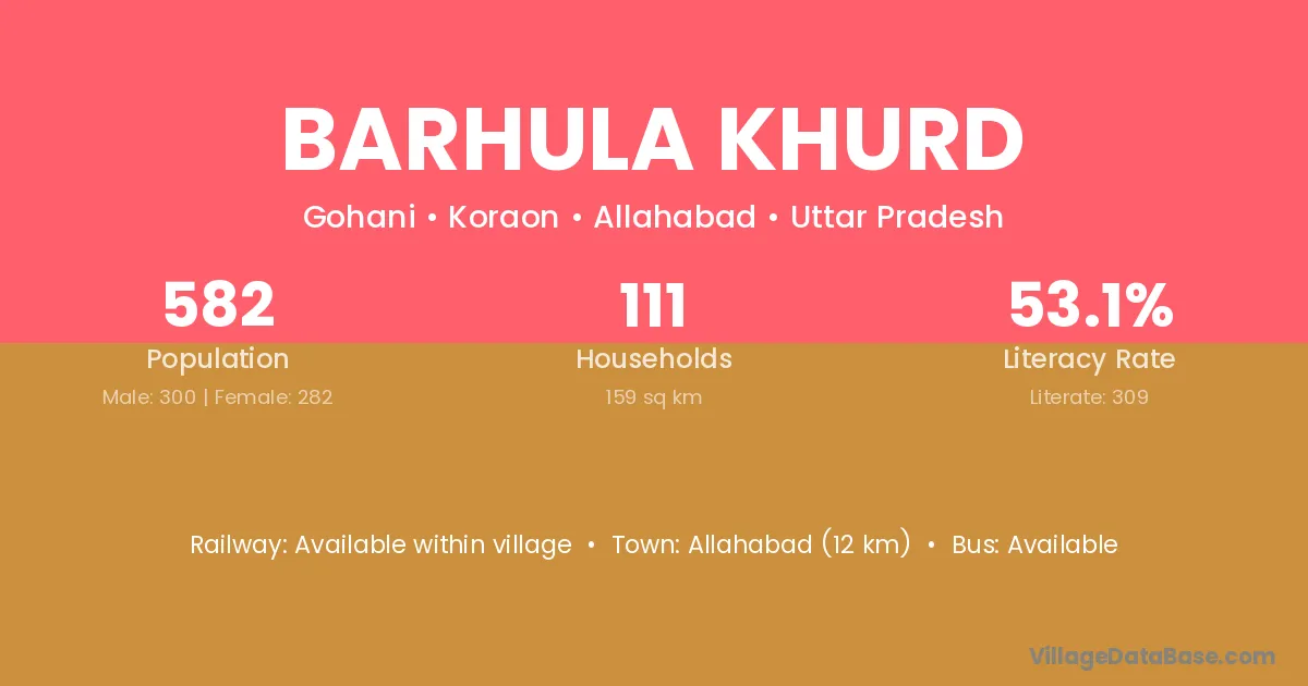 Allahabad (12 km) is the nearest town to Barhula Khurd village for major economic activities and is located approximately 12 km away.
