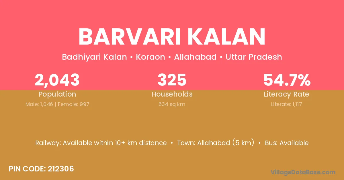 Allahabad (5 km) is the nearest town to Barvari Kalan village for major economic activities and is located approximately 5 km away.