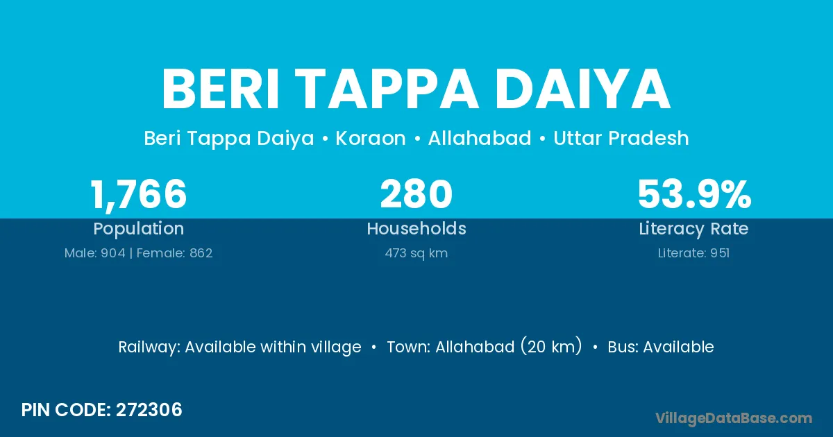 Allahabad (20 km) is the nearest town to Beri Tappa Daiya village for major economic activities and is located approximately 20 km away.