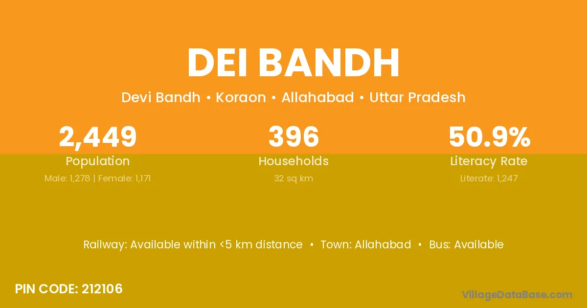Allahabad is the nearest town to Dei Bandh village for major economic activities