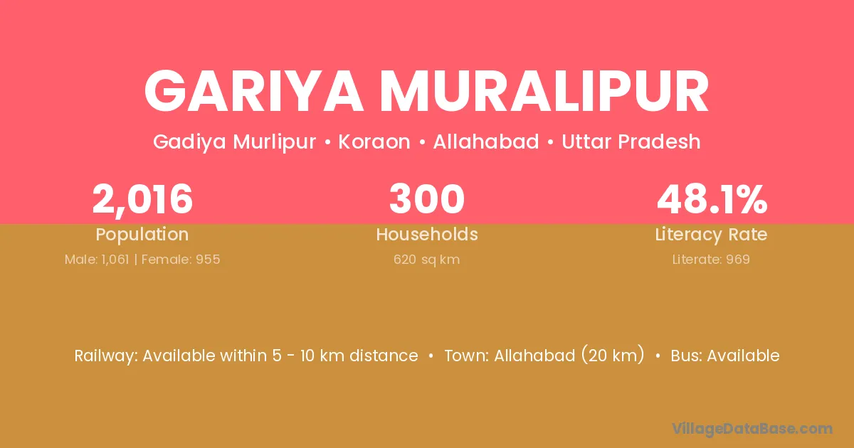 Allahabad (20 km) is the nearest town to Gariya Muralipur village for major economic activities and is located approximately 20 km away.