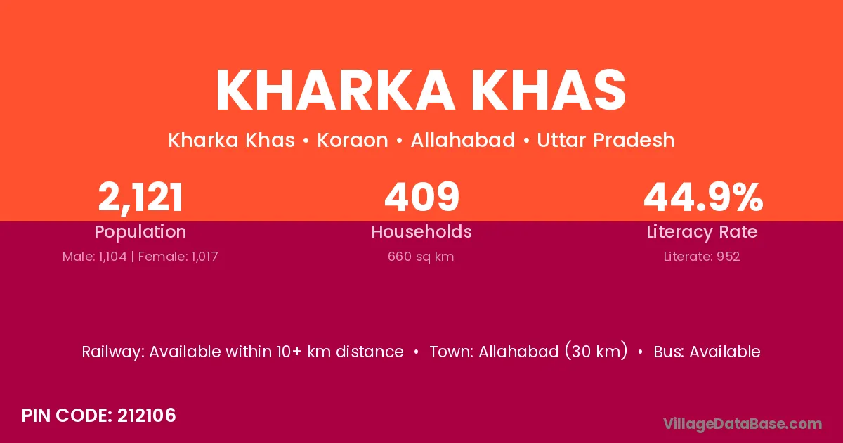 Allahabad (30 km) is the nearest town to Kharka Khas village for major economic activities and is located approximately 30 km away.