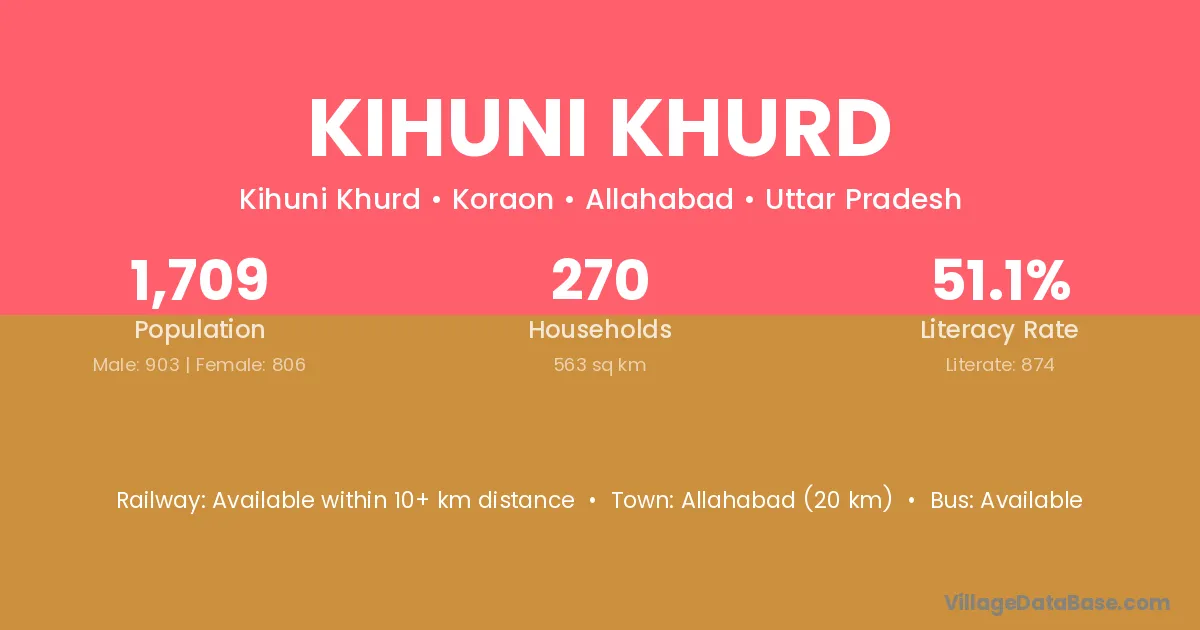 Allahabad (20 km) is the nearest town to Kihuni Khurd village for major economic activities and is located approximately 20 km away.