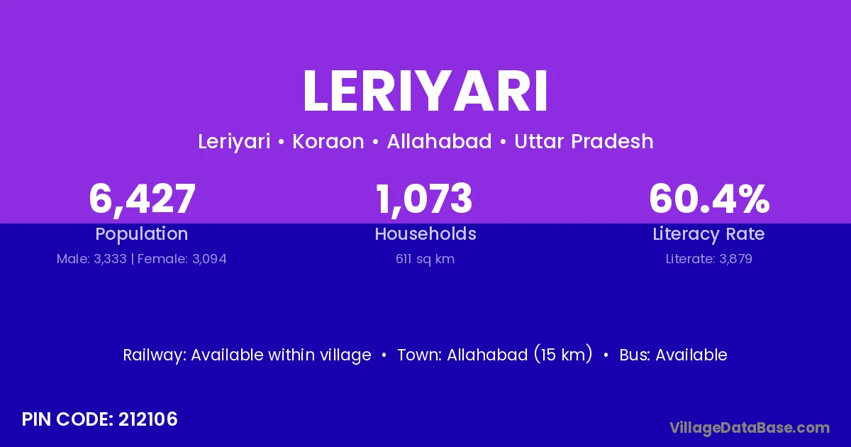 Allahabad (15 km) is the nearest town to Leriyari village for major economic activities and is located approximately 15 km away.