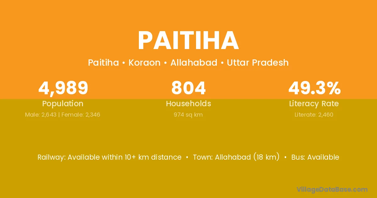 Allahabad (18 km) is the nearest town to Paitiha village for major economic activities and is located approximately 18 km away.