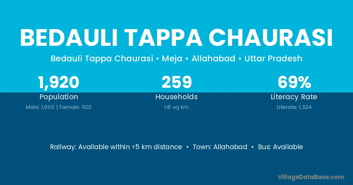 Allahabad is the nearest town to Bedauli Tappa Chaurasi village for major economic activities