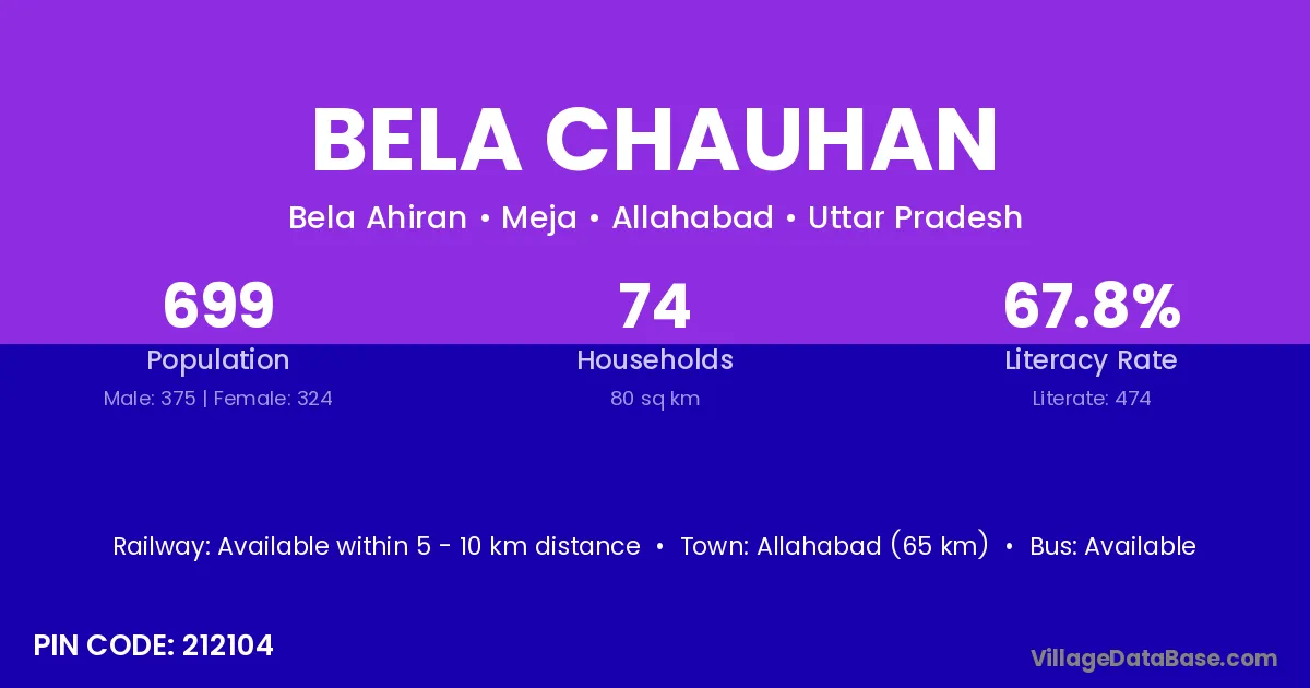 Allahabad (65 km) is the nearest town to Bela Chauhan village for major economic activities and is located approximately 65 km away.