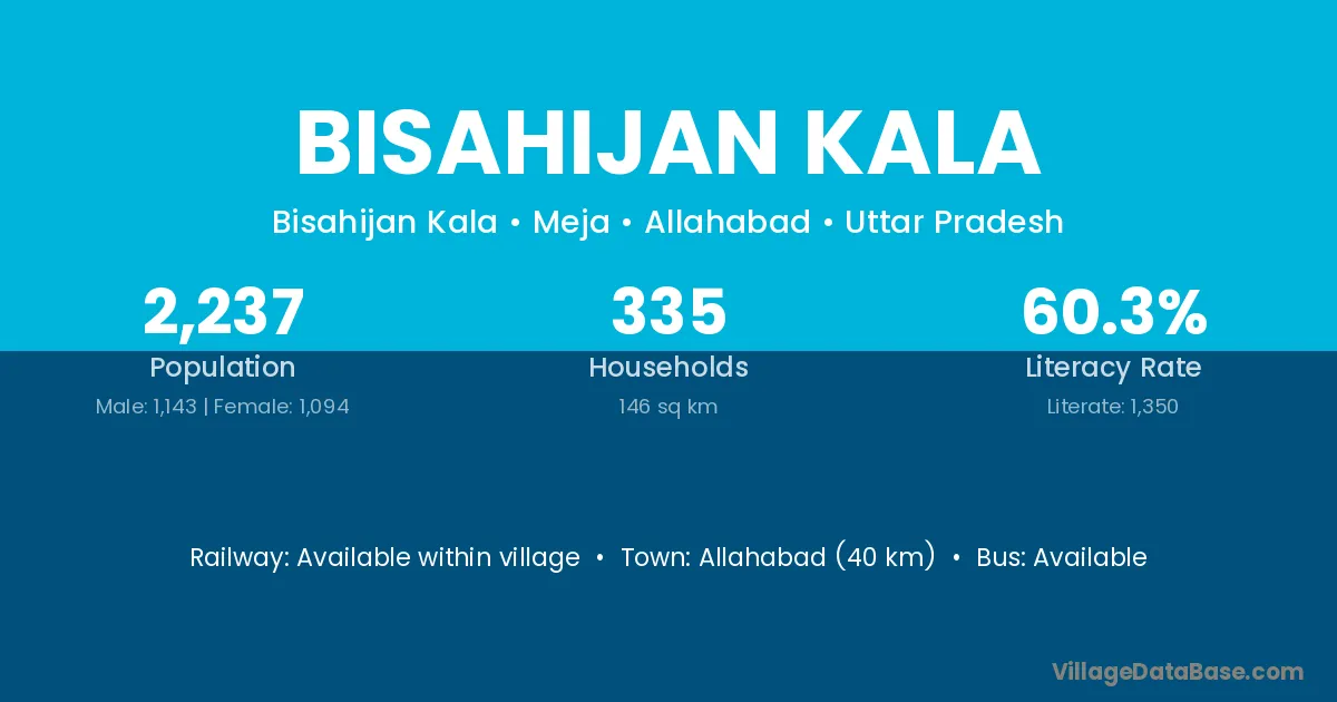 Allahabad (40 km) is the nearest town to Bisahijan Kala village for major economic activities and is located approximately 40 km away.
