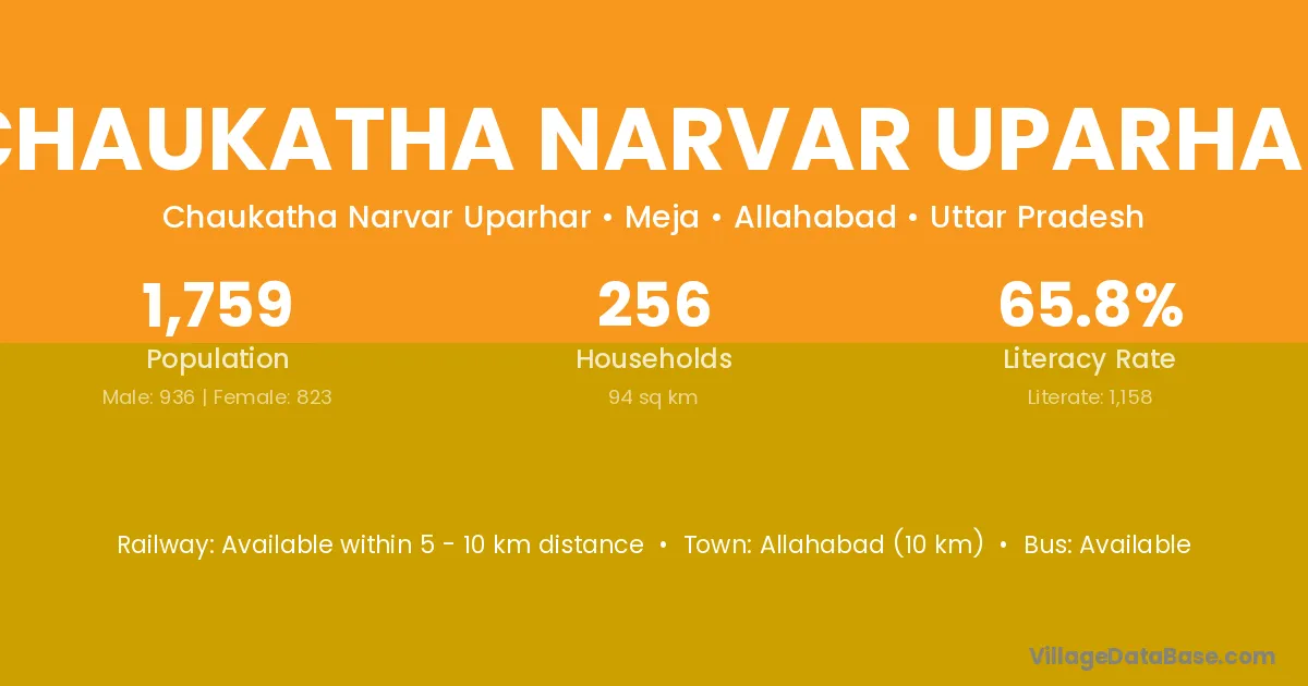 Allahabad (10 km) is the nearest town to Chaukatha Narvar Uparhar village for major economic activities and is located approximately 10 km away.