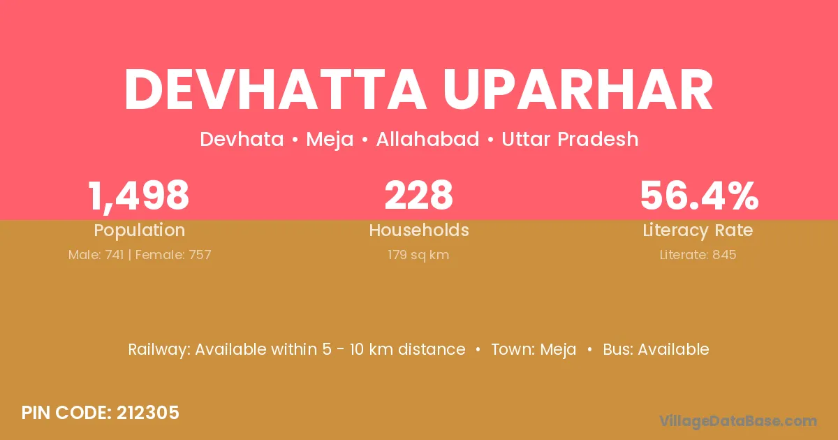 Devhatta Uparhar village has a total population of 1,498 people, of which 741 are males and 757 are females.