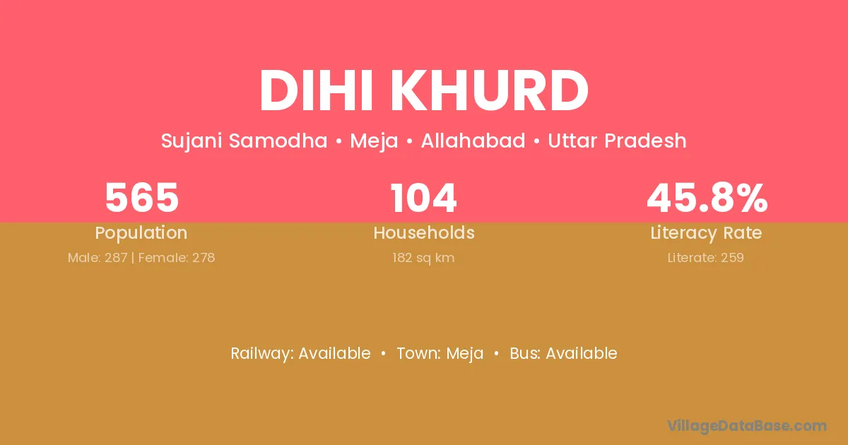 Dihi Khurd village has a total population of 565 people, of which 287 are males and 278 are females.