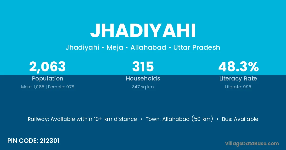 Allahabad (50 km) is the nearest town to Jhadiyahi village for major economic activities and is located approximately 50 km away.