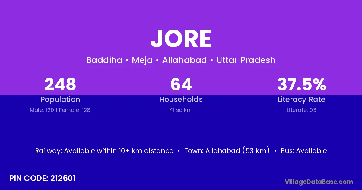 Allahabad (53 km) is the nearest town to Jore village for major economic activities and is located approximately 53 km away.