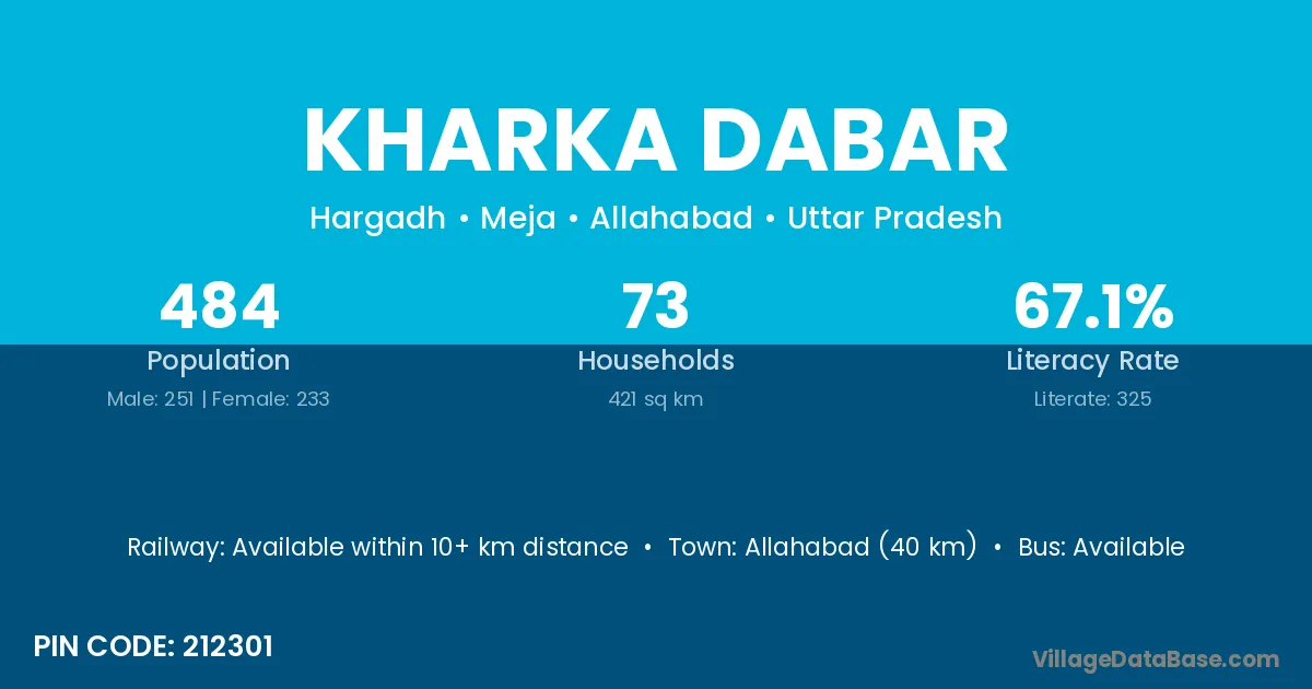 Allahabad (40 km) is the nearest town to Kharka Dabar village for major economic activities and is located approximately 40 km away.