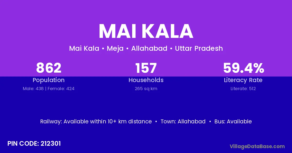 Allahabad is the nearest town to Mai Kala village for major economic activities
