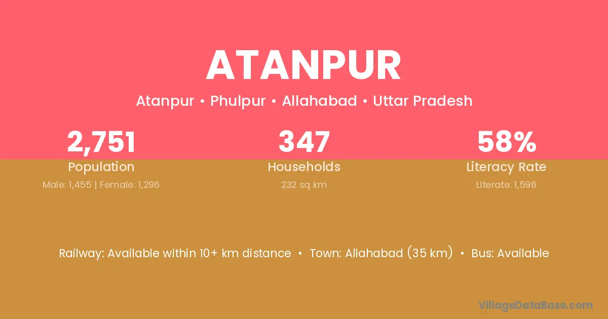 Allahabad (35 km) is the nearest town to Atanpur village for major economic activities and is located approximately 35 km away.