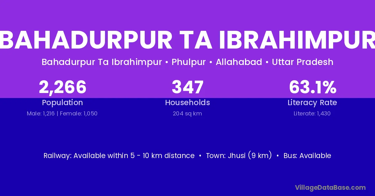 Jhusi (9 km) is the nearest town to Bahadurpur Ta Ibrahimpur village for major economic activities and is located approximately 9 km away.
