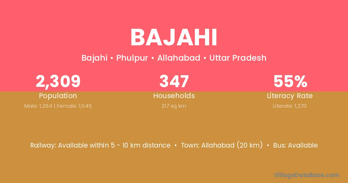 Allahabad (20 km) is the nearest town to Bajahi village for major economic activities and is located approximately 20 km away.