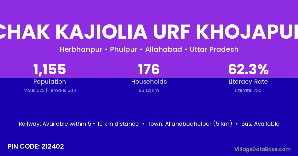 Allahabadhulpur (5 km) is the nearest town to Chak Kajiolia Urf Khojapur village for major economic activities and is located approximately 5 km away.
