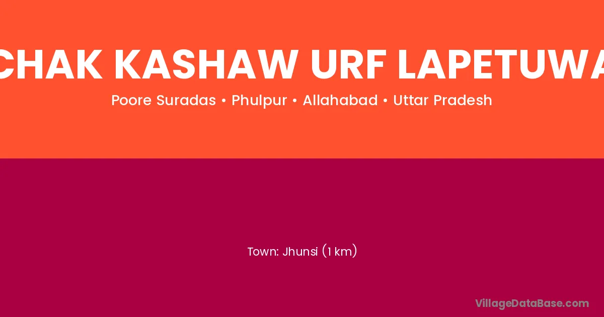 Jhunsi (1 km) is the nearest town to Chak Kashaw Urf Lapetuwa village for major economic activities and is located approximately 1 km away.