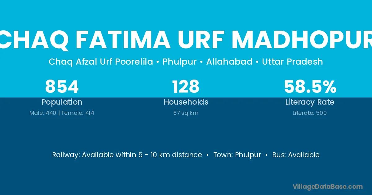 Chaq Fatima Urf Madhopur village has a total population of 854 people, of which 440 are males and 414 are females.
