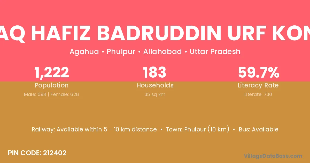 Chaq Hafiz Badruddin Urf Konar village has a total population of 1,222 people, of which 594 are males and 628 are females.