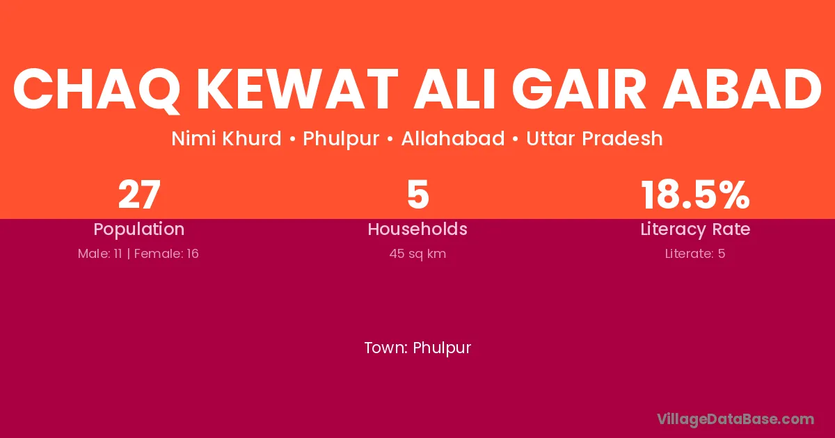 Chaq Kewat Ali Gair Abad village has a total population of 27 people, of which 11 are males and 16 are females.