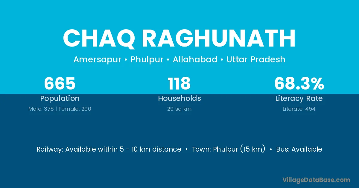 Phulpur (15 km) is the nearest town to Chaq Raghunath village for major economic activities and is located approximately 15 km away.