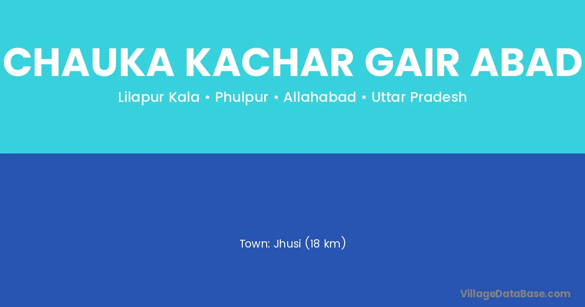 Jhusi (18 km) is the nearest town to Chauka Kachar Gair Abad village for major economic activities and is located approximately 18 km away.