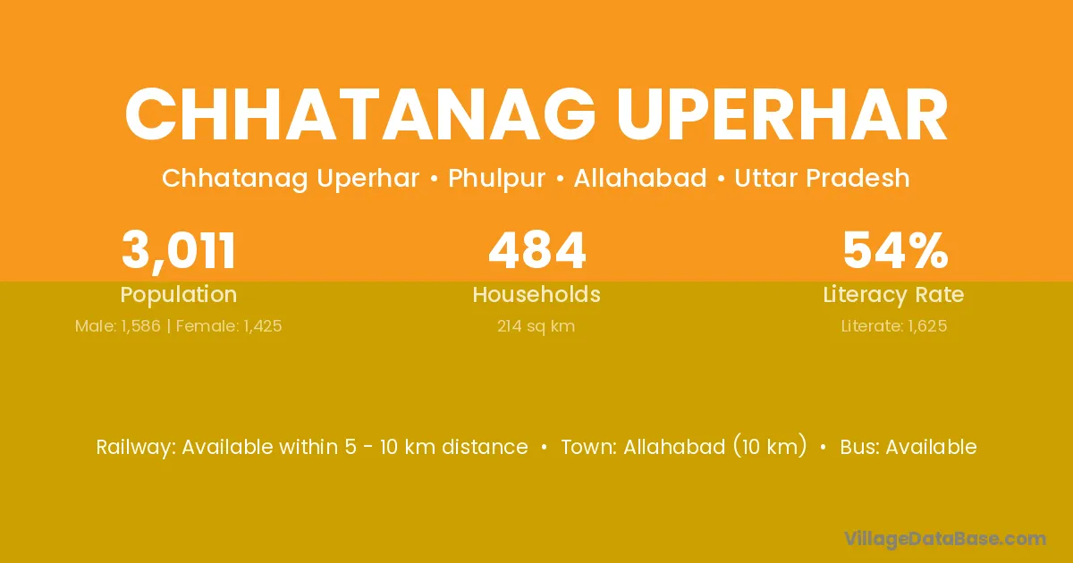 Allahabad (10 km) is the nearest town to Chhatanag Uperhar village for major economic activities and is located approximately 10 km away.