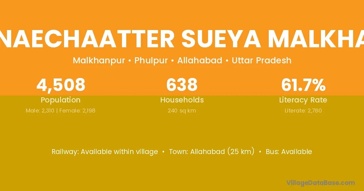 Dhanaechaatter Sueya Malkhanpu village has a total population of 4,508 people, of which 2,310 are males and 2,198 are females.