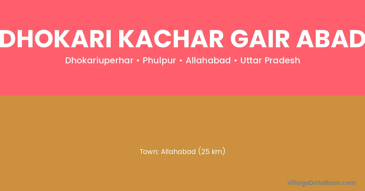 Allahabad (25 km) is the nearest town to Dhokari Kachar Gair Abad village for major economic activities and is located approximately 25 km away.