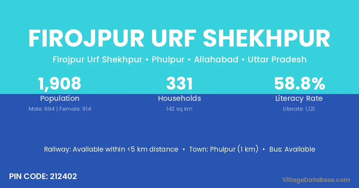 Phulpur (1 km) is the nearest town to Firojpur Urf Shekhpur village for major economic activities and is located approximately 1 km away.