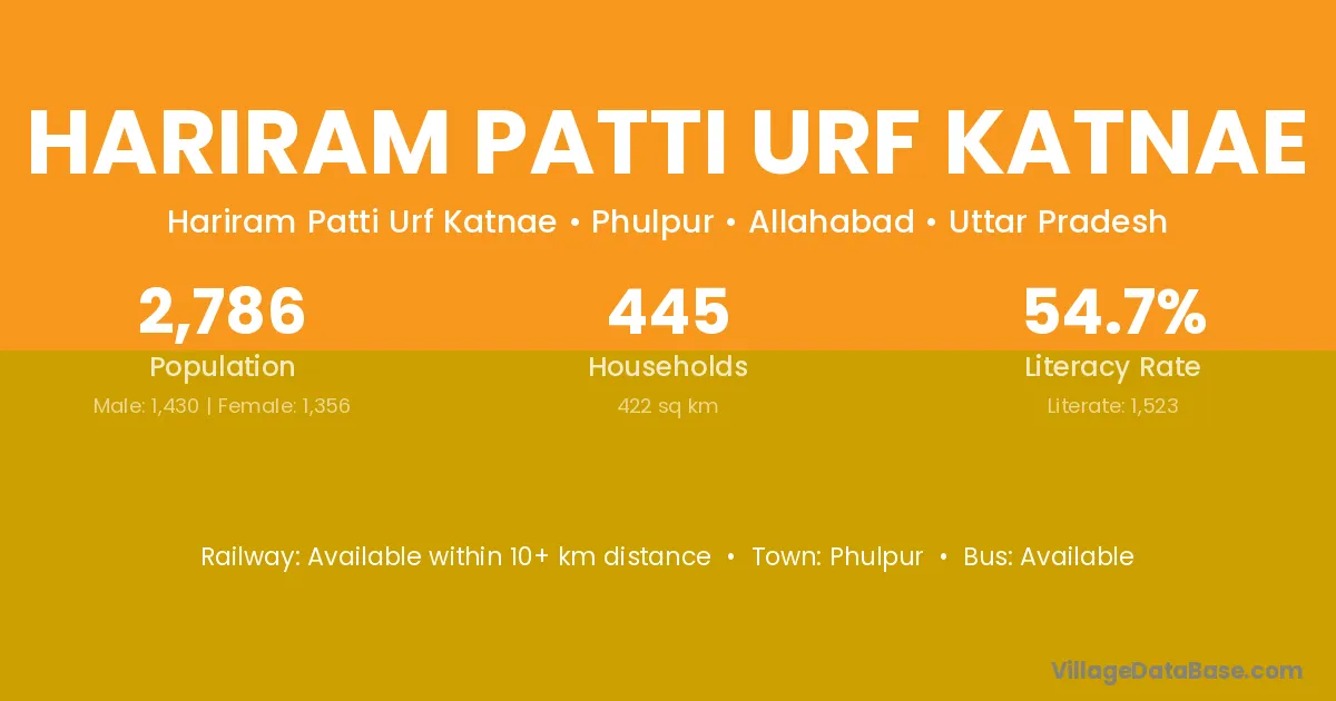 Hariram Patti Urf Katnae village has a total population of 2,786 people, of which 1,430 are males and 1,356 are females.