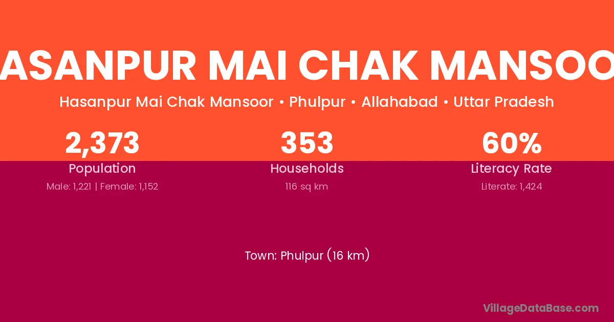Phulpur (16 km) is the nearest town to Hasanpur Mai Chak Mansoor village for major economic activities and is located approximately 16 km away.