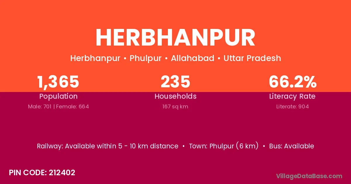 Phulpur (6 km) is the nearest town to Herbhanpur village for major economic activities and is located approximately 6 km away.
