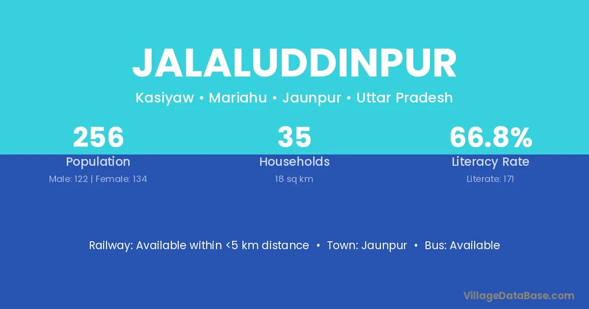 Jalaluddinpur village has a total population of 249 people, of which 127 are males and 122 are females.