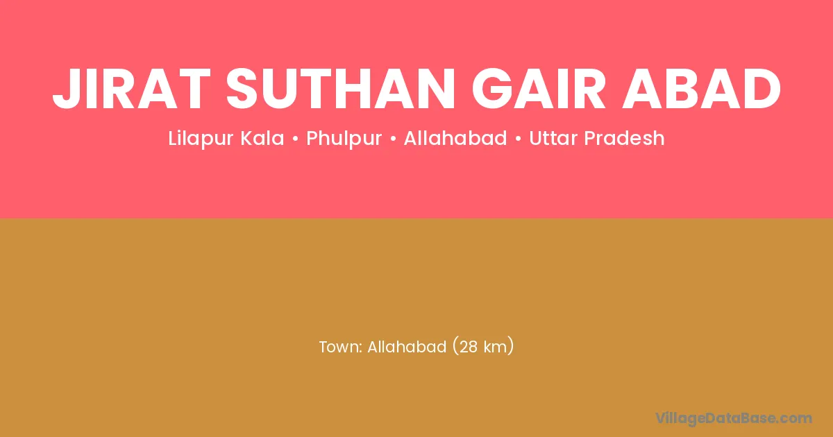 Allahabad (28 km) is the nearest town to Jirat Suthan Gair Abad village for major economic activities and is located approximately 28 km away.
