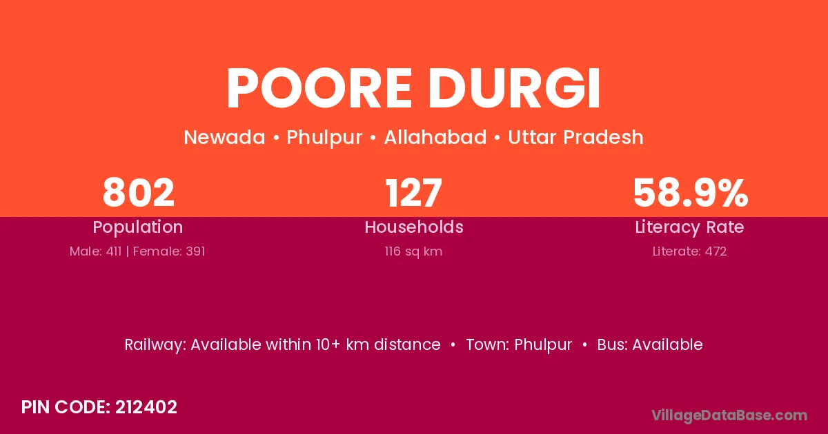 Phulpur is the nearest town to Poore Durgi village for major economic activities