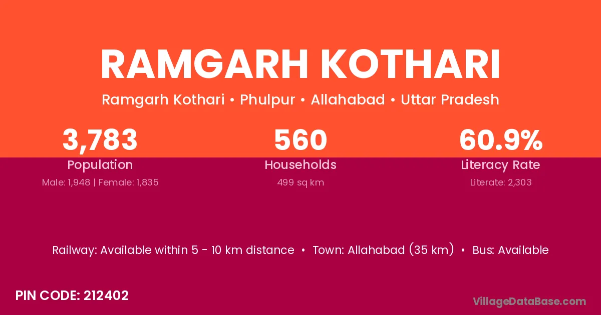 Allahabad (35 km) is the nearest town to Ramgarh Kothari village for major economic activities and is located approximately 35 km away.