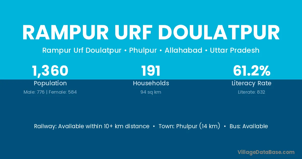 Phulpur (14 km) is the nearest town to Rampur Urf Doulatpur village for major economic activities and is located approximately 14 km away.