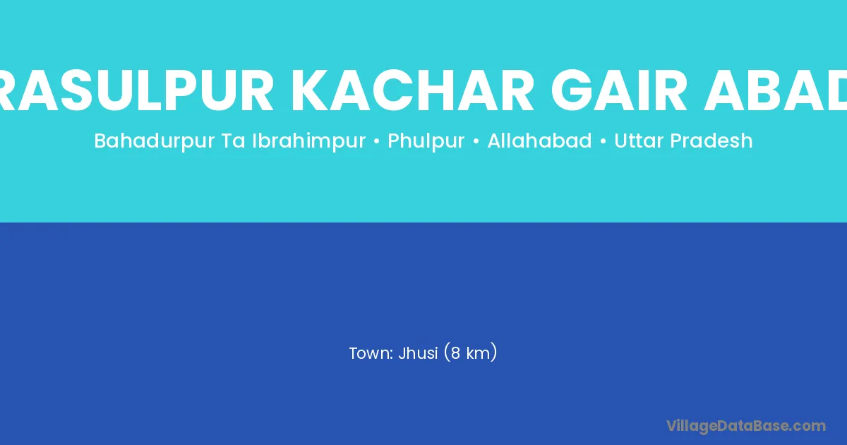 Jhusi (8 km) is the nearest town to Rasulpur Kachar Gair Abad village for major economic activities and is located approximately 8 km away.