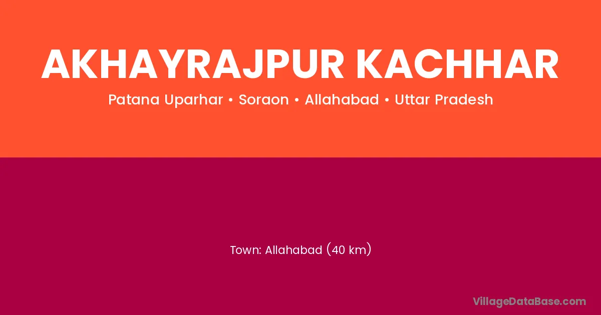 Allahabad (40 km) is the nearest town to Akhayrajpur Kachhar village for major economic activities and is located approximately 40 km away.