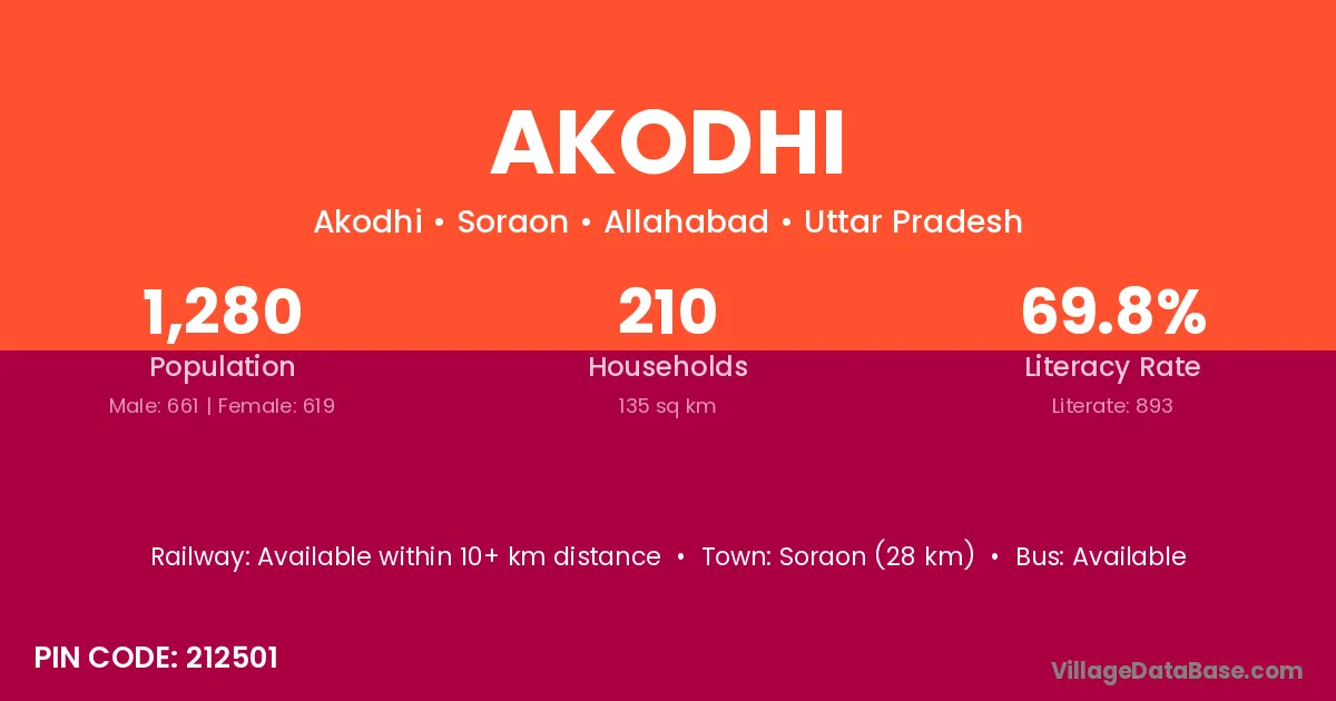 Soraon (28 km) is the nearest town to Akodhi village for major economic activities and is located approximately 28 km away.