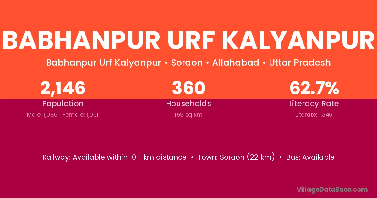 Soraon (22 km) is the nearest town to Babhanpur Urf Kalyanpur village for major economic activities and is located approximately 22 km away.