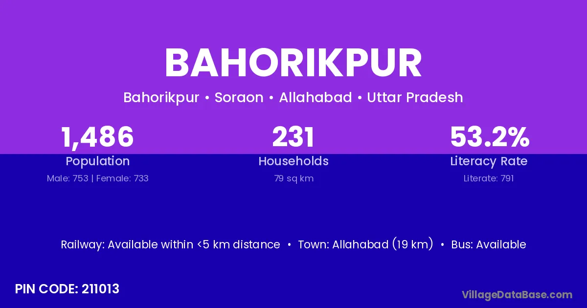 Allahabad (19 km) is the nearest town to Bahorikpur village for major economic activities and is located approximately 19 km away.