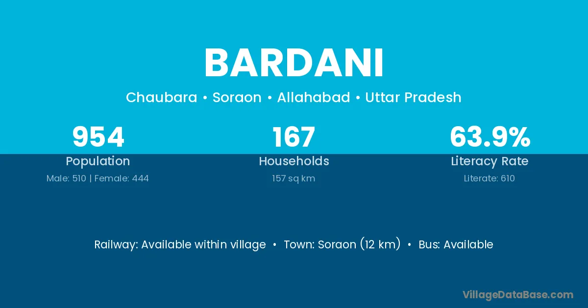 Soraon (12 km) is the nearest town to Bardani village for major economic activities and is located approximately 12 km away.
