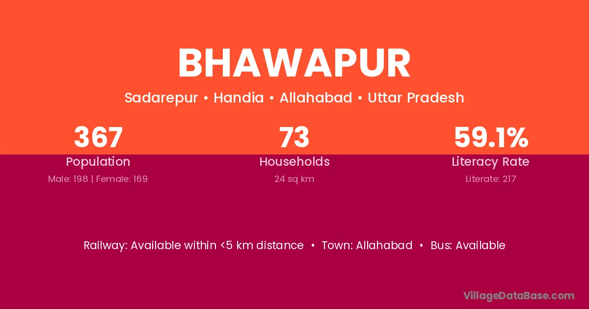 The literacy rate of Bhawapur village is 63.42%. Male literacy stands at 74.21% and female literacy at 50.69%.